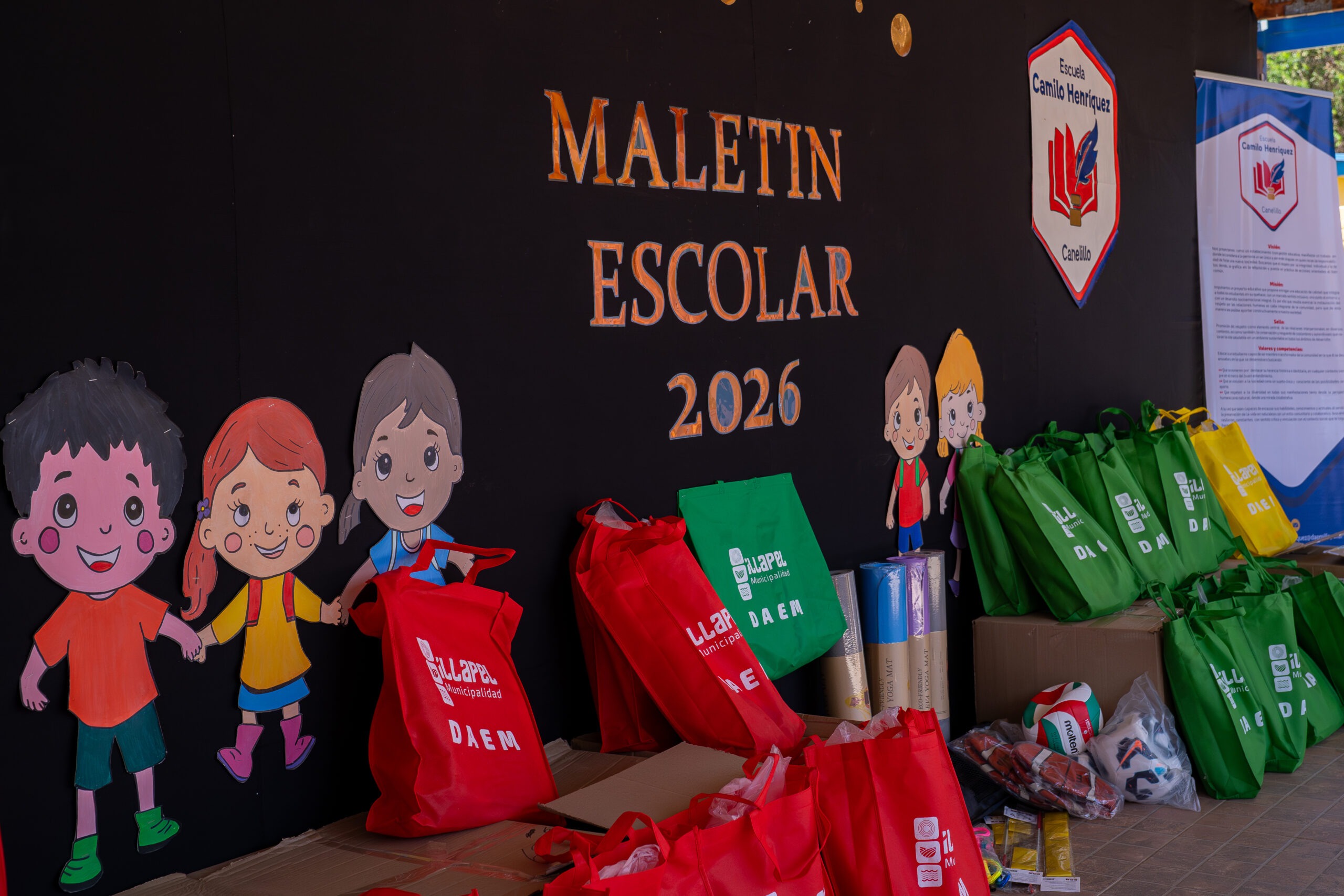 Durante la primera semana de clases, el alcalde Denis Cortés Aguilera recorrió distintos establecimientos urbanos y rurales, finalizando la distribución total de los maletines escolares 2026, beneficiando a estudiantes desde el nivel inicial hasta enseñanza media.